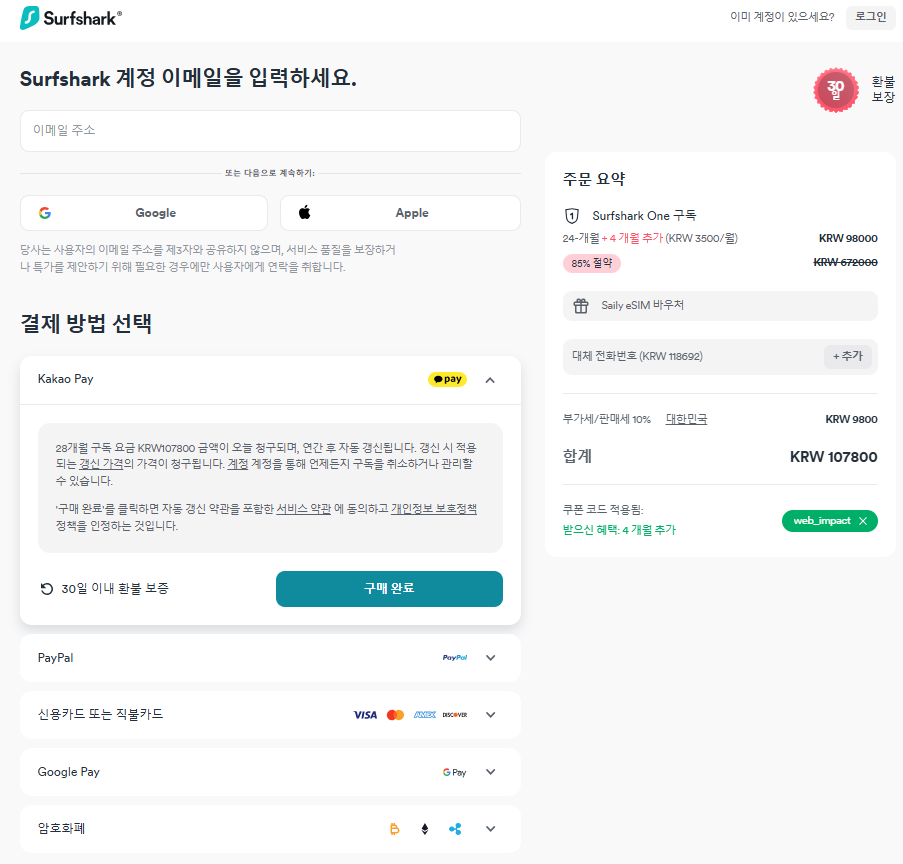 이번 기회에 구독하셔서 28개월 동안 서프샤크 VPN으로 마음껏 누리세요!